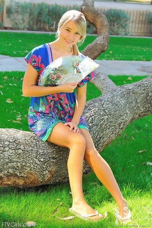 Описание:«Стройная блондиночка, которой не исполнилось еще и двадцати лет, откровенная настолько, что не смущается позировать полуобнаженной прямо в парке. Здесь красотка полностью снимает с себя платье, после чего берется за банан. Облизывать фрукт язычком, это не так сексуально, как использовать его вместо самотыка. Дрочка бананом получилась на удивление очень славной.»